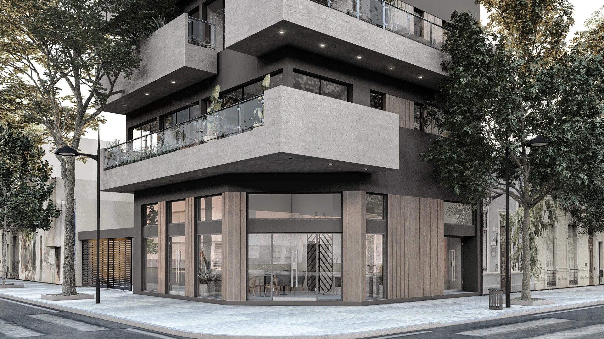 Descripción: Proyecto de edificio residencial urbano, 20 departamentos de un dormitorio, con dos locales comerciales en planta baja.