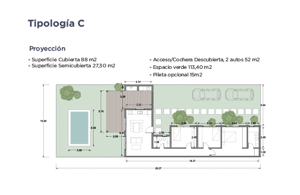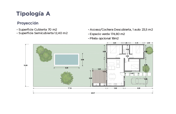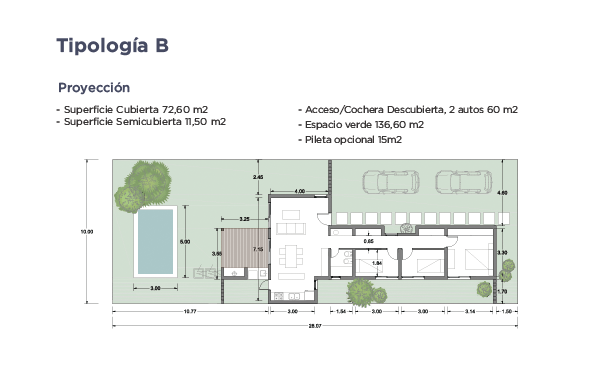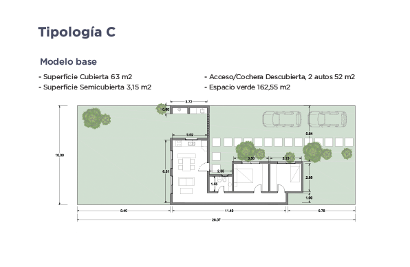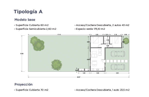 Descripción: Proyecto residencial urbano, con 1 nivel de construcción, máximo 2. Viviendas modulares y personalizadas en planta baja con potencialidad de expansión al mismo nivel o al piso superior. 12 viviendas en complejo cerrado en PH en lotes de 10×28 (280 m2).