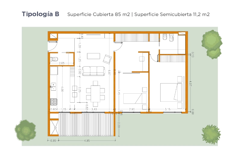 Materialidad: Muros aislados. Aislación de aberturas de aluminio. Mueble de cocina y anafe. Pisos y revestimiento de porcelanato. Preinstalación de Aire Acondicionado. Icono de grifería y sanitarios. Posee caldera. Paredes con doble masillado. Calefacción por radiadores. Cubierta de chapa. Cortina microperforada.
