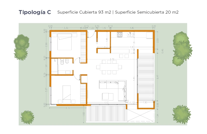 Materialidad: Muros aislados. Aislación de aberturas con material de PVC con doble vidrio hermético. Pisos de porcelanato en living, cocina y baño. Habitaciones con piso vinílico. Posee caldera, cocina, bajo mesada y frente de placares. Paredes con doble masillado. Calefacción por radiadores. Biodigestor, preinstalación de aire acondicionado.